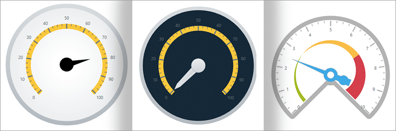 The control configurators shave hours off development time by removing the complexity of learning the Gauge API. Visually configure your entire gauge in a WYSIWYG point-and-click experience. Allow your designers to style controls interactively and visually to get a pixel-perfect render of their design intent.