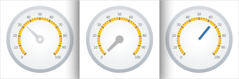 Customize Radial Gauge's needle attributes, such as color, length, point, base, and cap. The following needle shapes are built-in: