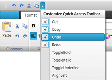 Display commonly-used tools in a compact, quick access toolbar (QAT) where users can add or remove tools.