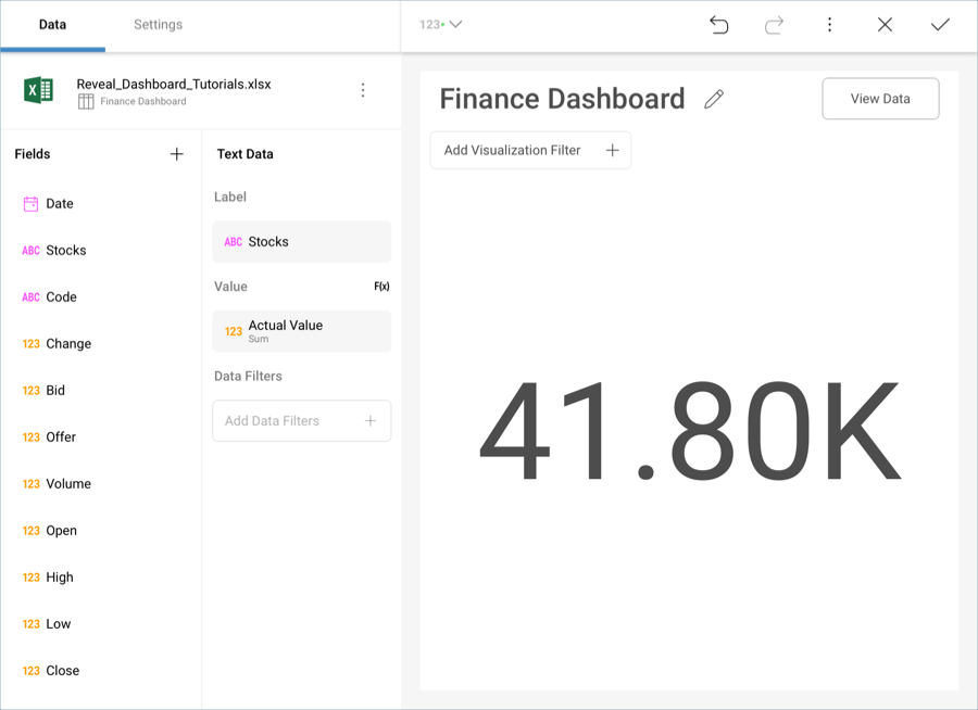 Stocks into the Label placeholder of the data editor.