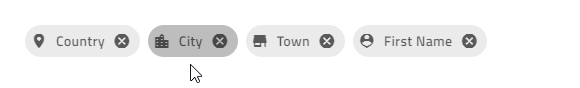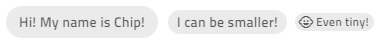 is a visual element that displays information in an oval container. The component has various properties - it can be templated, deleted, and selected. Multiple chips can be reordered and visually connected to each other, using the chip area as a container.