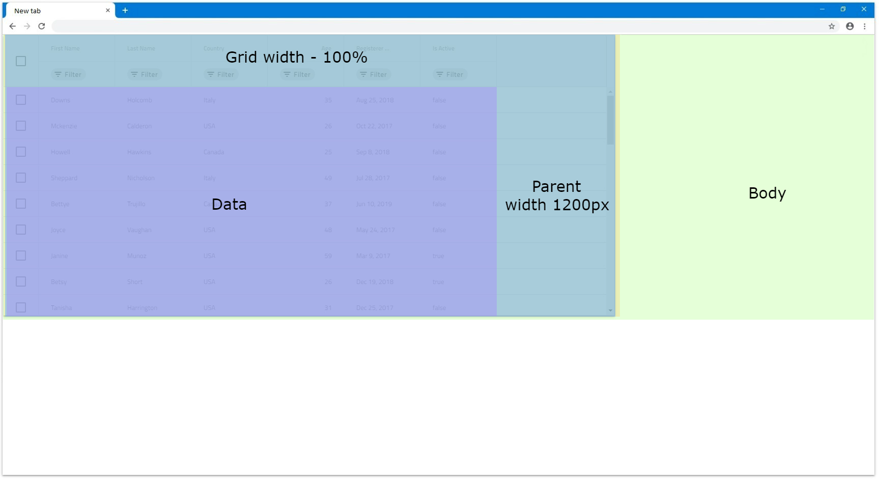 and there is no parent element it will fill 100% of the available width of the browser window. If it is resized the grid will resize as well accordingly.If we set grid's width to